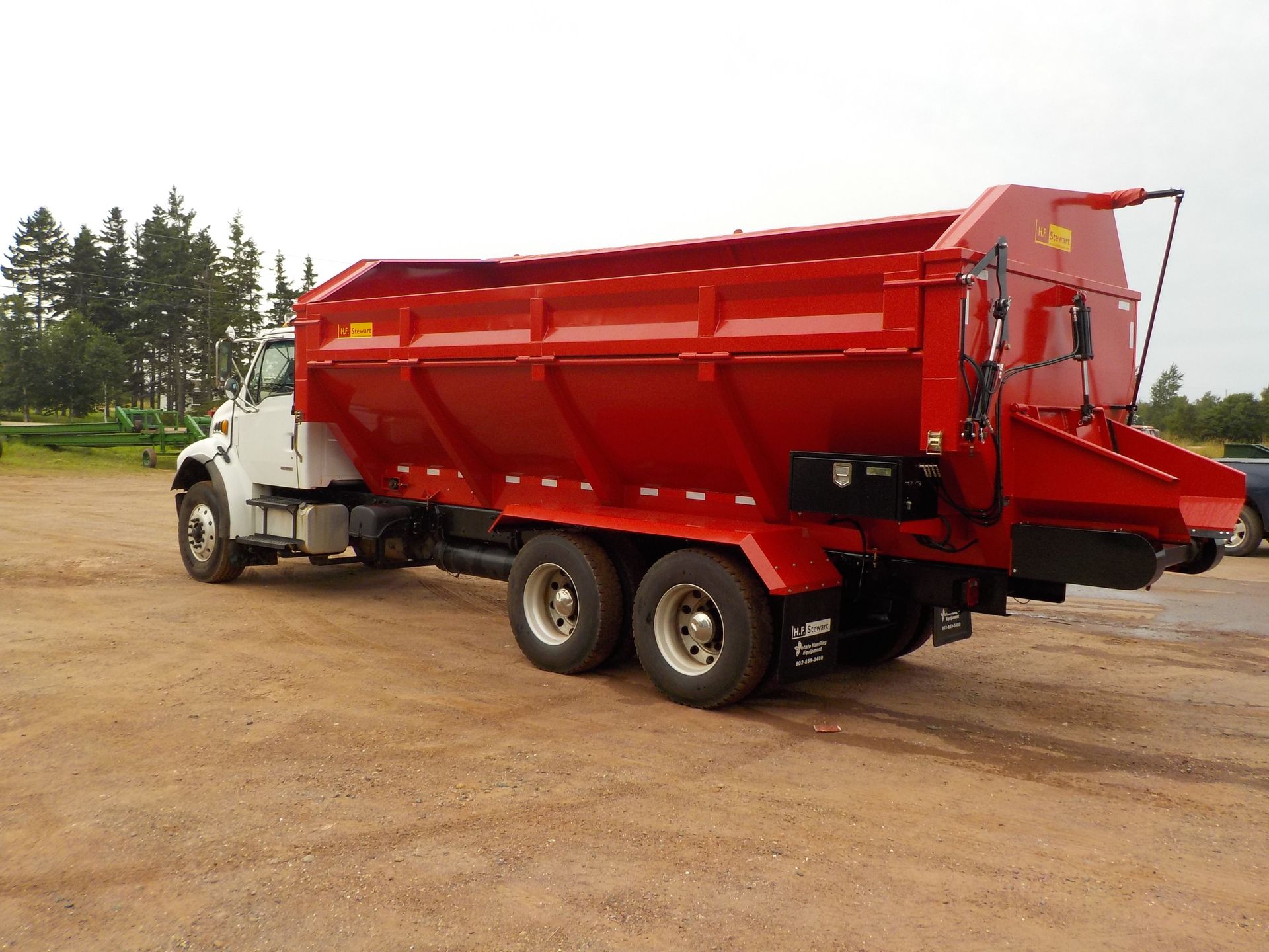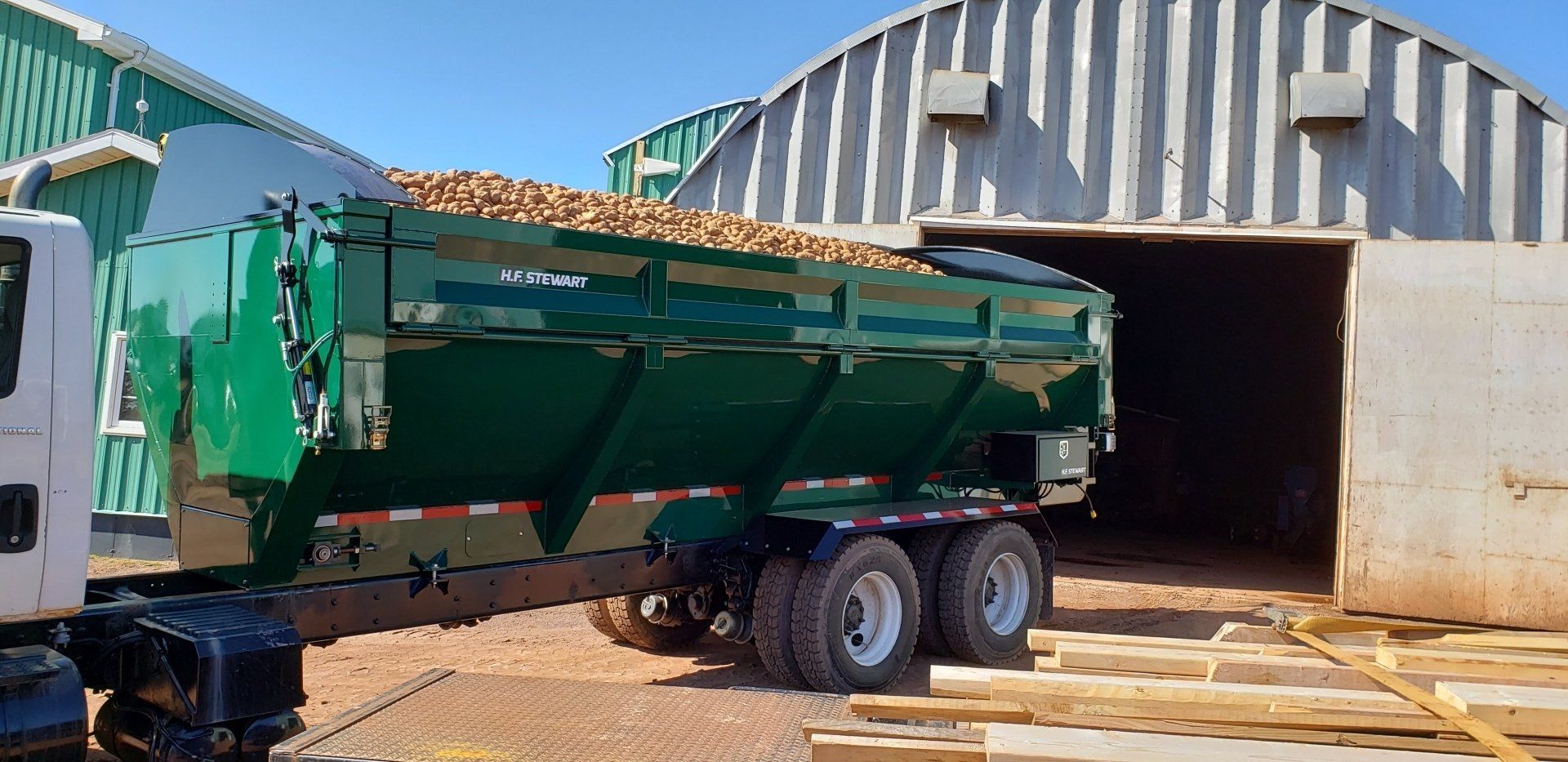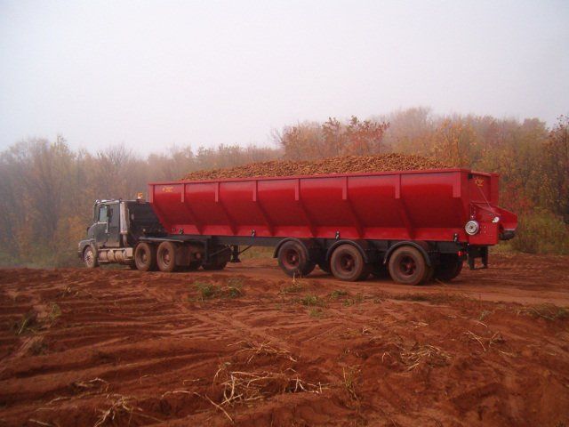 The H.F Stewart Live Bottom Bulk Box is designed for the agribusiness that needs to haul large amounts of potatoes and other agricultural product. The unique round tub design of our Live Bottom Bulk Box uses a deeper radius then your standard round tub boxes, meaning a greater payload with a much lower center of gravity. Built with high quality parts for less maintenance and greater reliability. Potatoes coming out of the Live Bottom Bulk Box will be bruise free and drivers will not have to get inside to clean out the box eliminating the risk of injury. We designed our product line with you in mind, so sit back relax and let the H.F Stewart Live Bottom Bulk Box do the hard work for you.