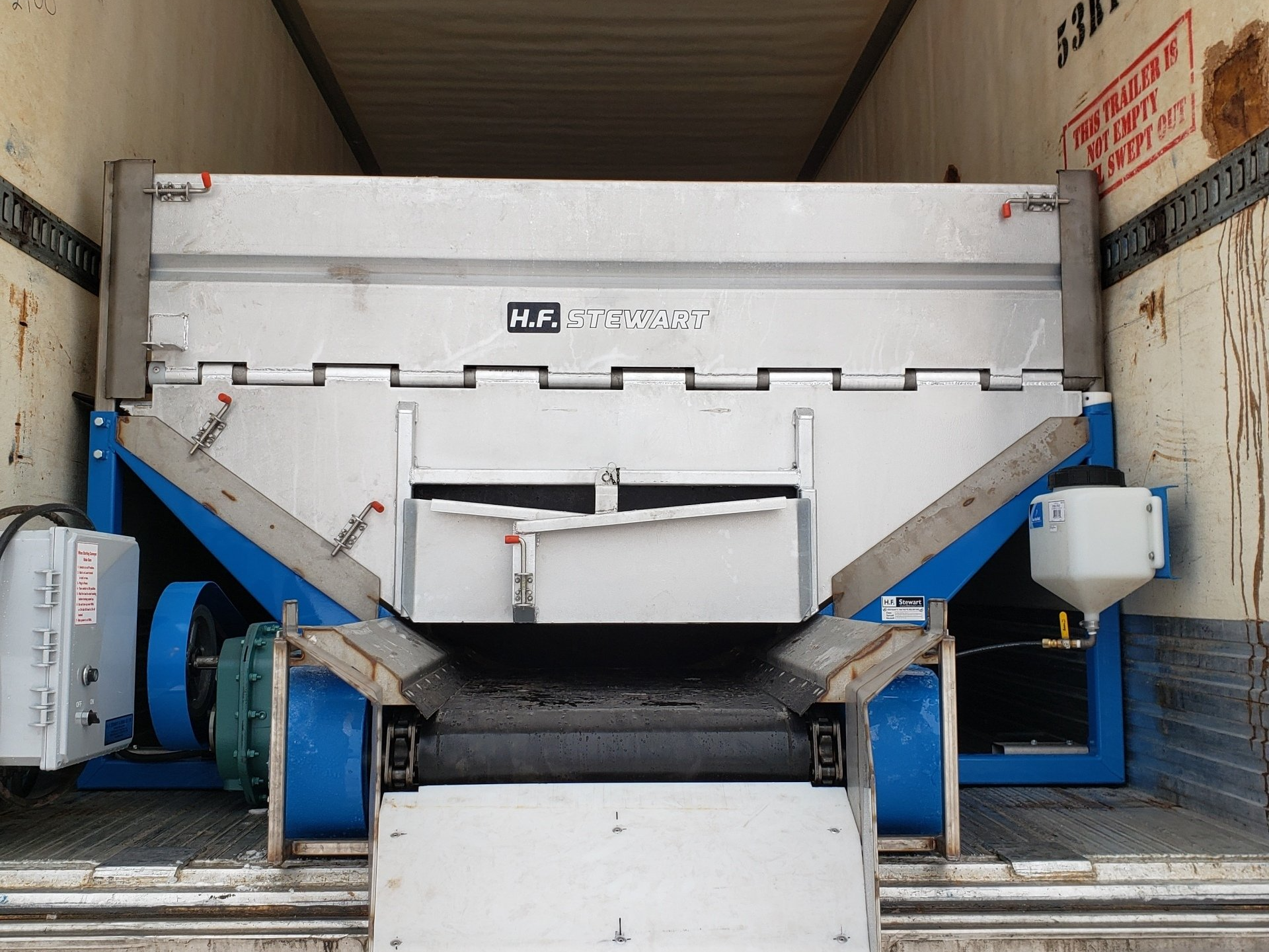 With the H.F Stewart Van Trailer Insert gone are the days of pulling planks and climbing inside your trailer to get the last of the potatoes out. Got your attention? What if I told you it also has a frequency drive for added speed and it is very user friendly. We thought you would like that! So sit back, relax, and let the H.F Stewart Van Trailer Insert do the hard work for you.